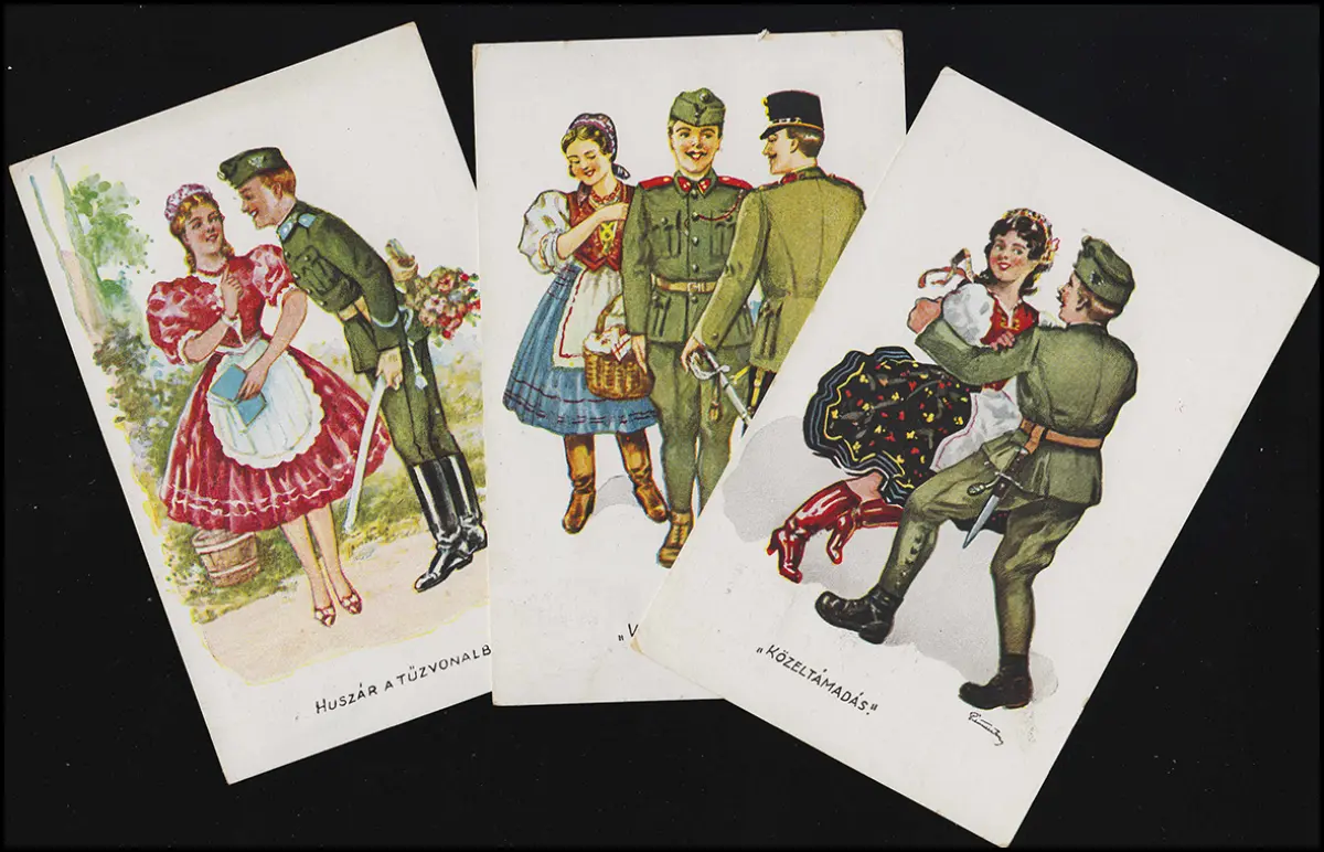 5 kit partiel de cartes (en cours) avec des images de soldats et de femmes parfois signés en langue hongroise, dessins partiellement signés. Examen: original Référence produit: 00000000021827>p>Remarque: Cet article n'est disponible qu'une seule fois. Vous recevrez exactement l'article représenté.