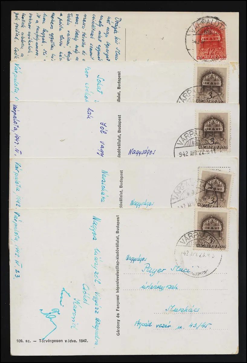 AK Ensemble Soldats & Femmes Gardony ès Fennyvesi, Karinger Budapest, Várpalota 1942