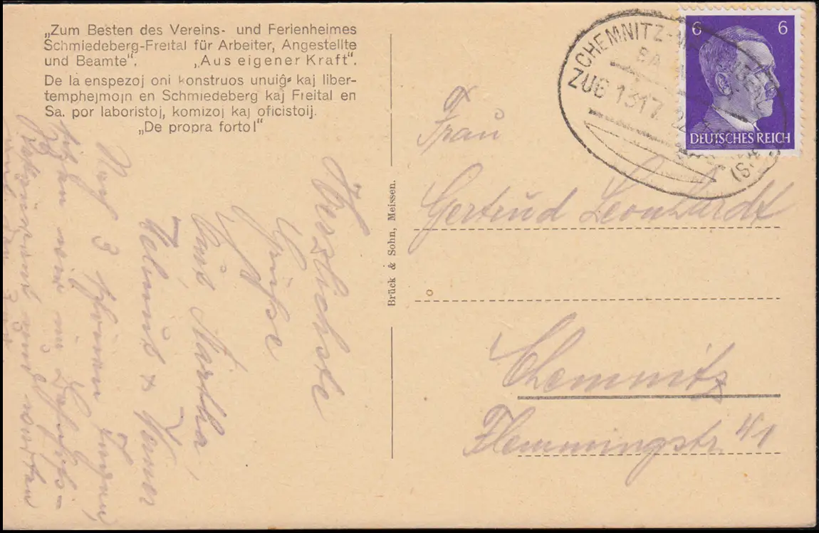 AK Entre Reitzenhain et Zöblitz: Chatstein, par voie ferroviaire CHEMNITZ 1943