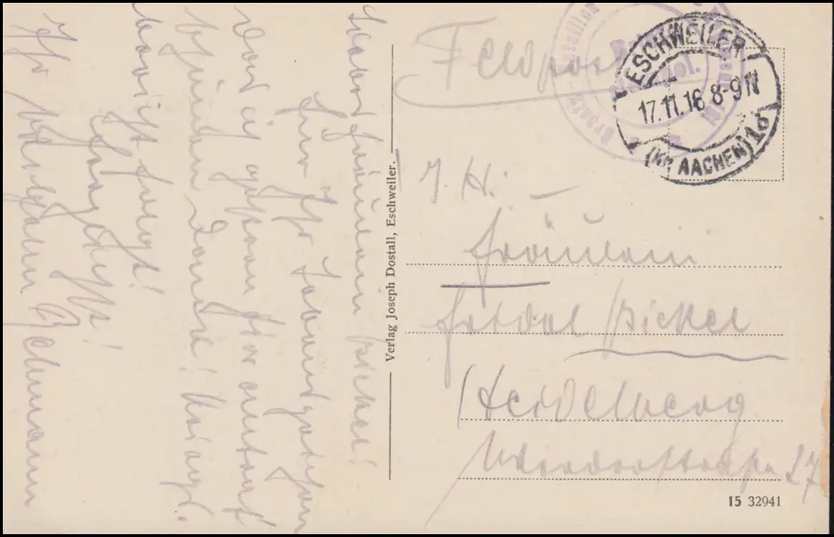 AK Eschweiler Caserner (Hof), poste de terrain ESCHWEILER (Kr. AACHEN) 17.11.16