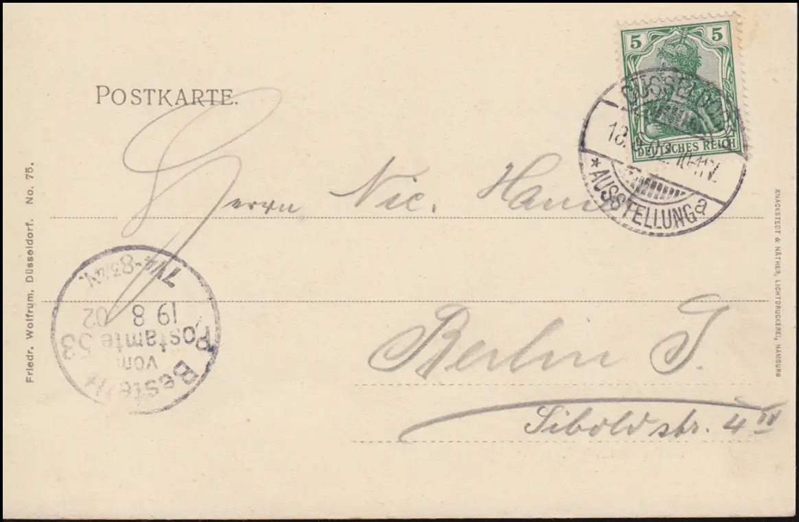 AK Exposition industrielle et commerciale DUSSELDORF CAIRE, SSt ACTION 18.8.1902
