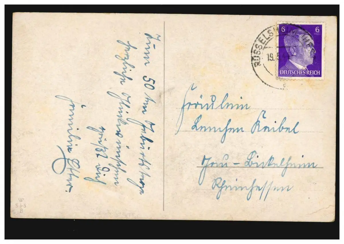 AK Félicitations Anniversaire de fille avec des arroseurs champ de fleurs RÜSSELSHEIM 19.5.44