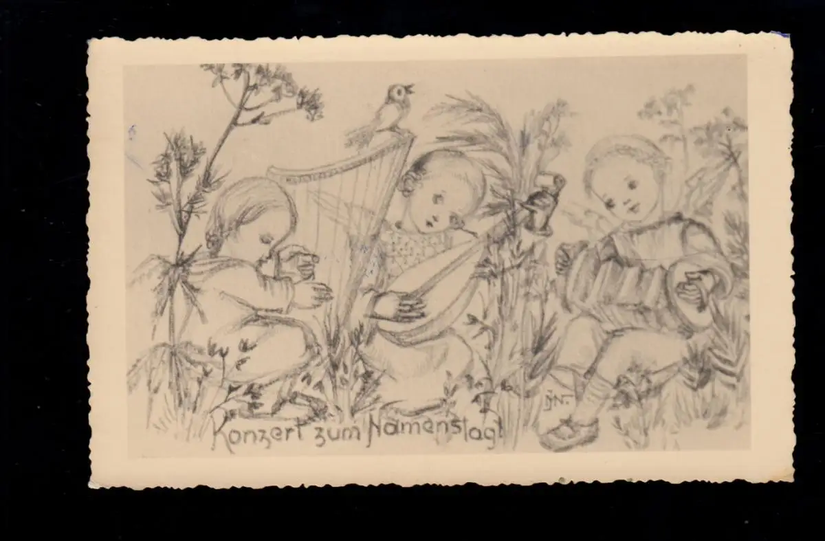 AK Félicitations Journée du nom: Concert Angel Harfe Mandoline Accordéon, marqué