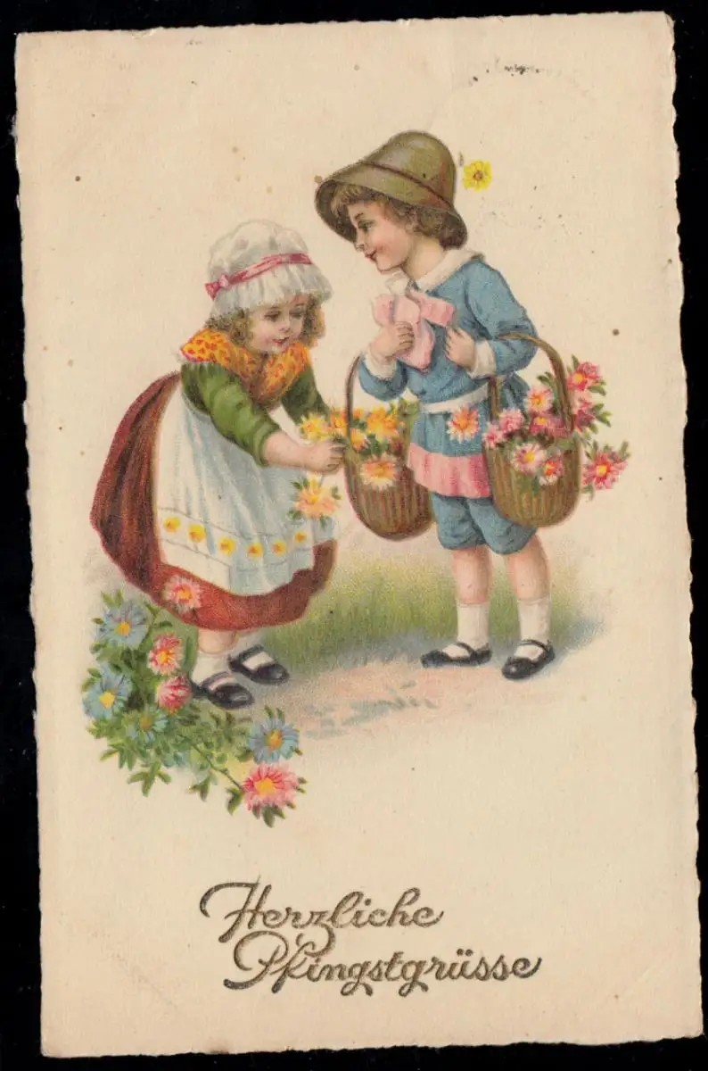 AK Félicitations Pentecôte: Enfants avec paniers de fleurs, VIENNE 6.6.1930