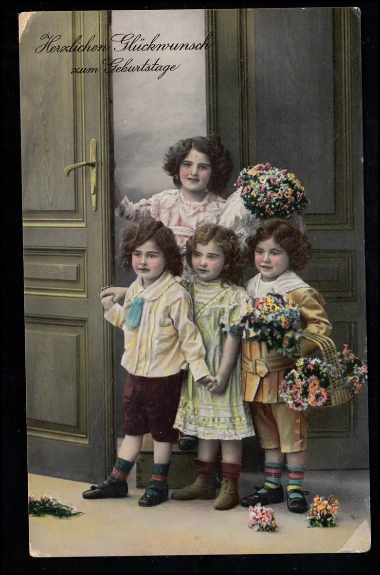 AK Félicitations anniversaire: 4 filles à la porte veulent féliciter, LEUTENBERG