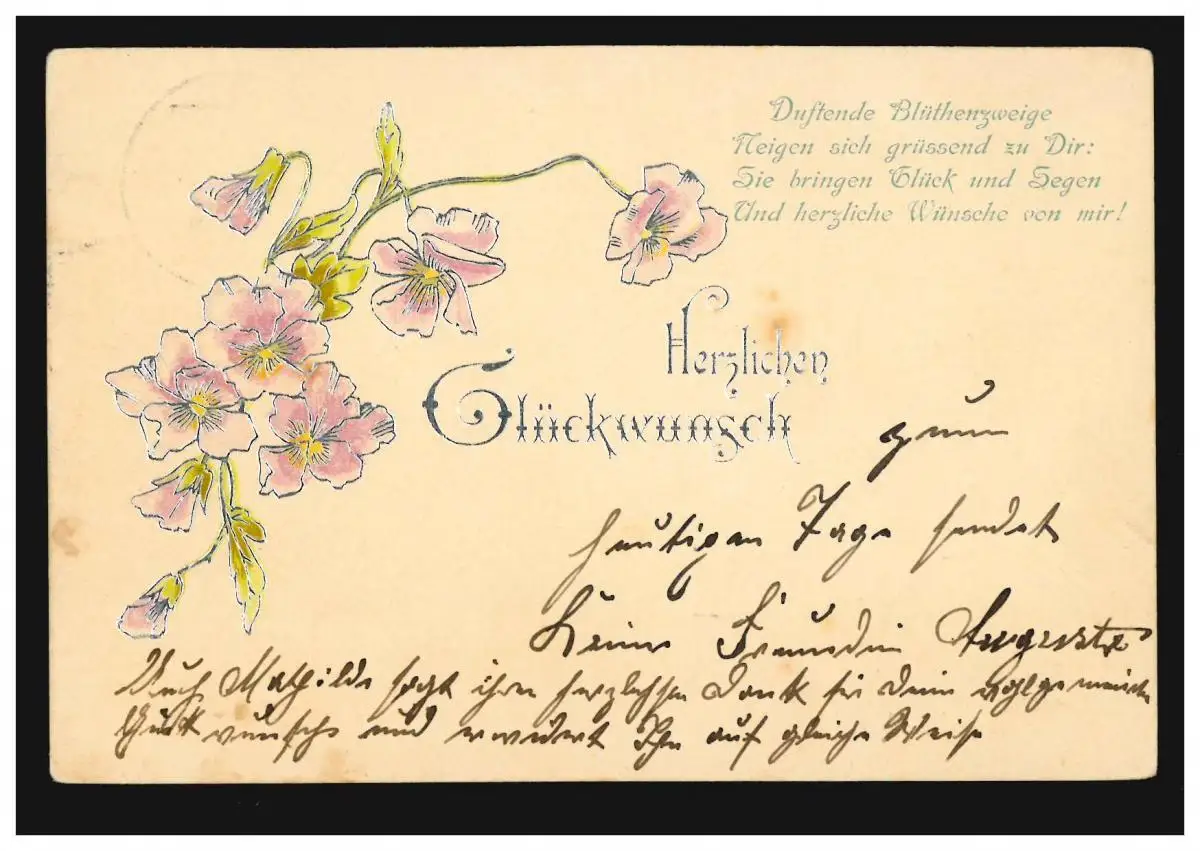 AK Félicitations anniversaire Branches florales parfumées, MAGDEBURG 7.5.1899 selon AGERN