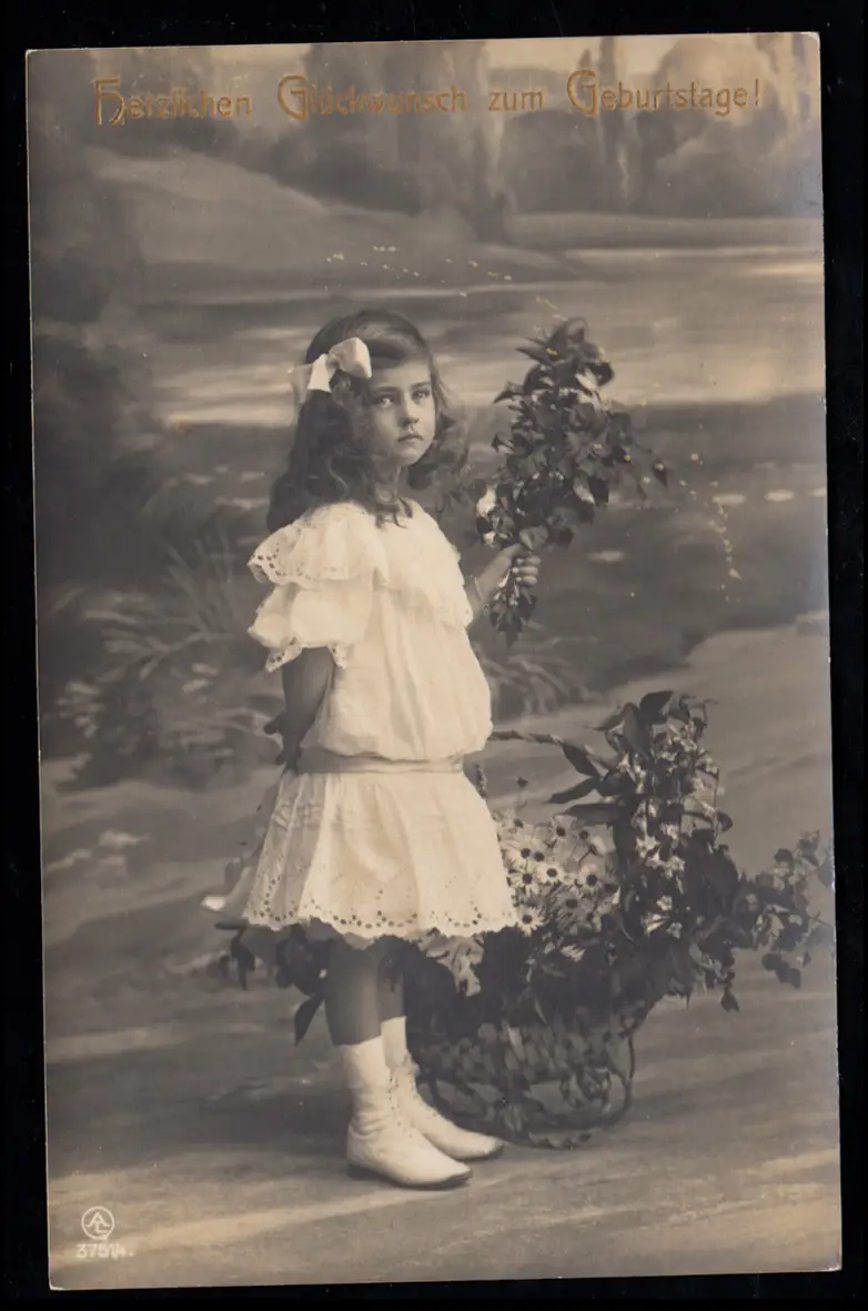 AK Félicitations anniversaire: Fille rêveuse en robe blanche, OLDENBURG 7.2.10