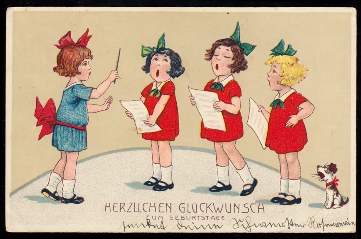 AK Félicitations anniversaire: Filles avec chien, ELMSHORN vers 1930
