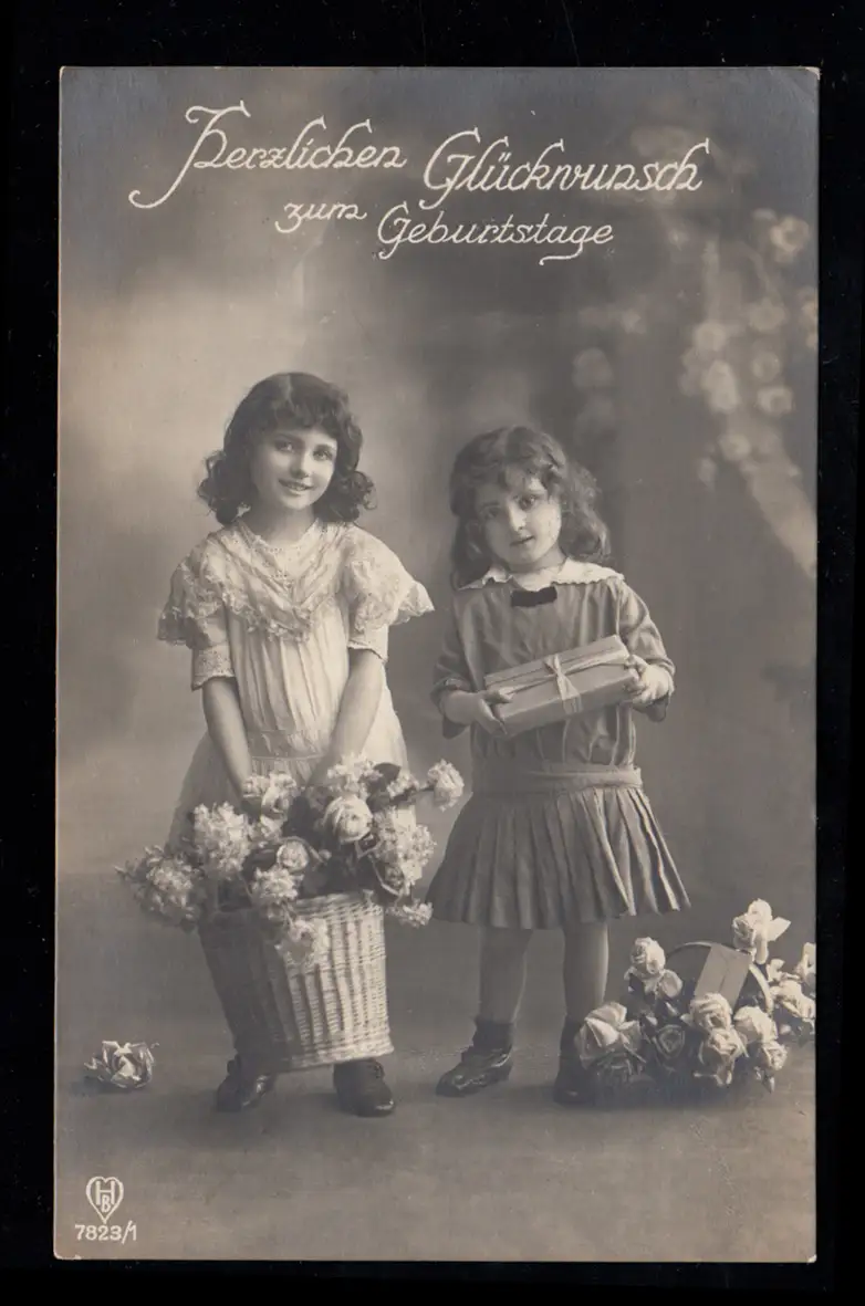 AK Félicitations anniversaire: Les filles apportent fleurs et cadeaux, HILGEN 27.4.25