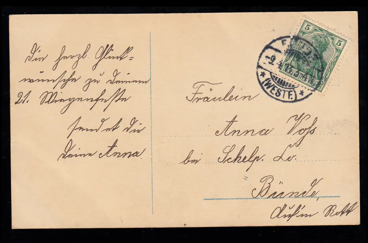 AK Félicitations anniversaire: Portrait de femme avec bouquet de roses PENSION (WESTF.) 9.4.13