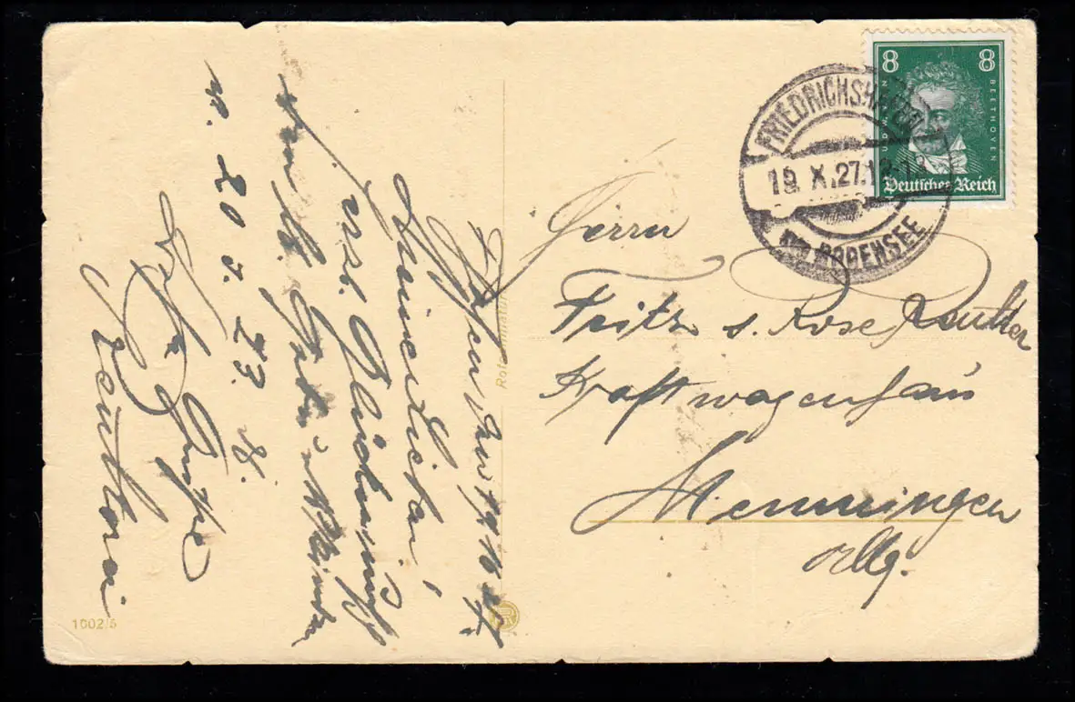 Tampon quotidien FREIDICHSHAVEN sur le BODENSEE 19.10.27 Vérification: original Référence produit: 00000000001324