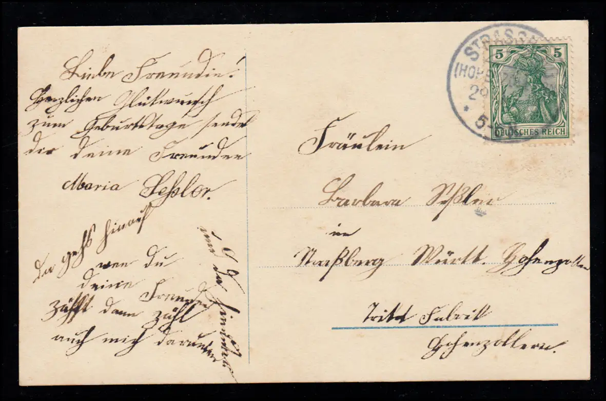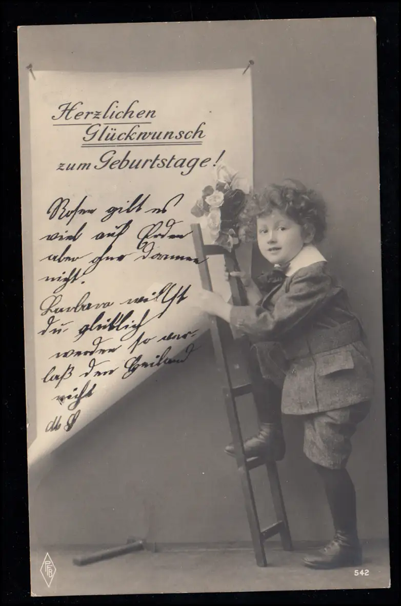 AK Félicitations anniversaire: garçon avec des fleurs sur le chef STRASSBERG (HOHENZ)
