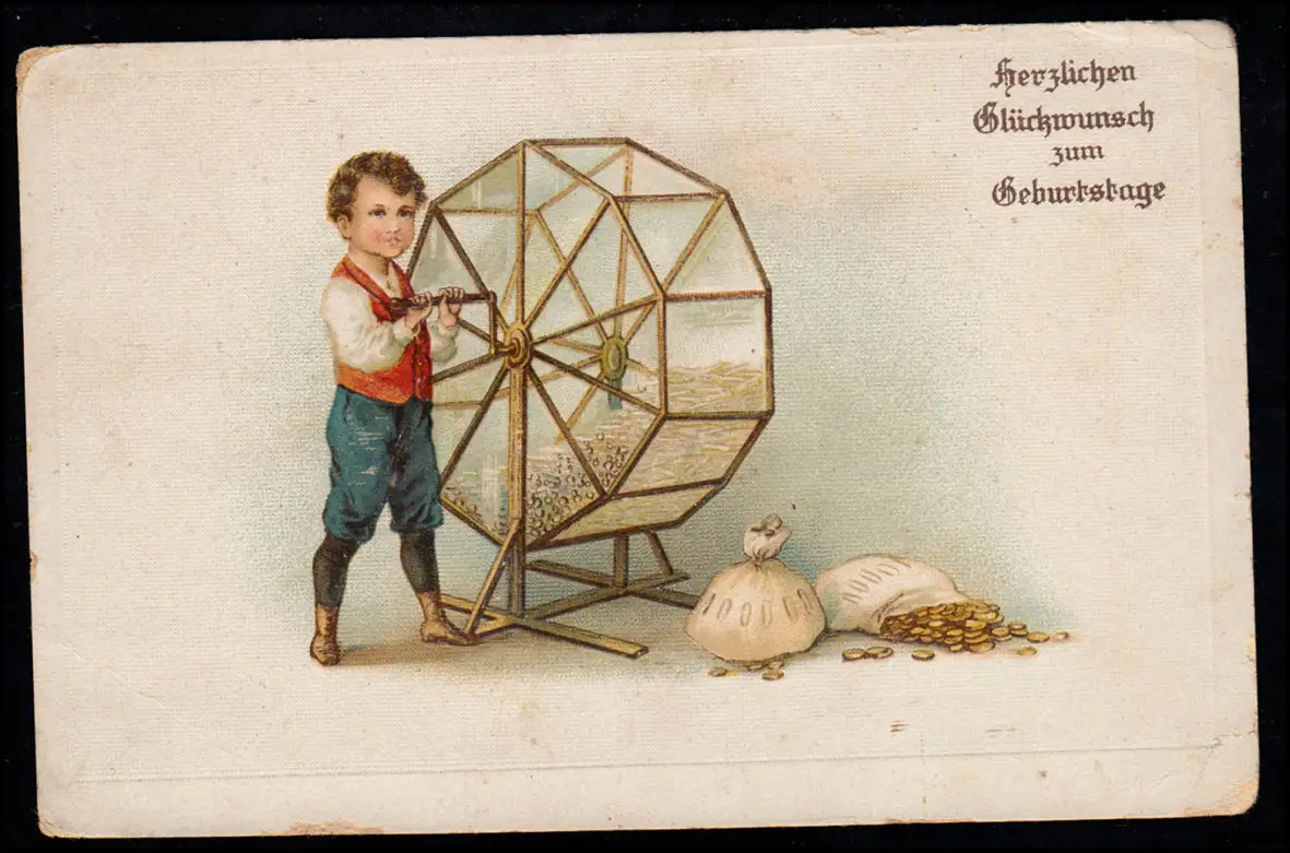 AK Félicitations anniversaire garçon tourne tambour de tirage sacs de monnaie, non utilisé