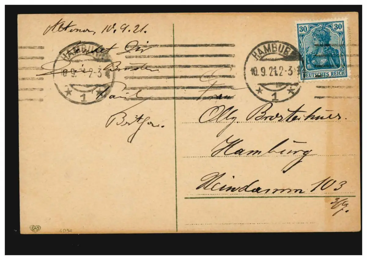 AK Félicitations pour l'anniversaire avec lettre et sceau, HAMBURG 10.9.1921