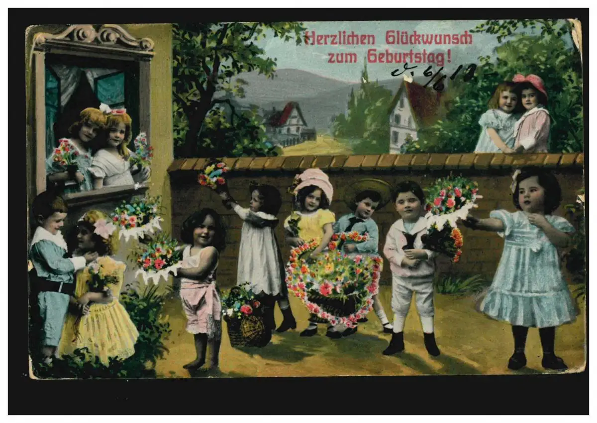 AK Félicitations pour les enfants apporter des fleurs d'anniversaire, FUTURE 6.6.1913