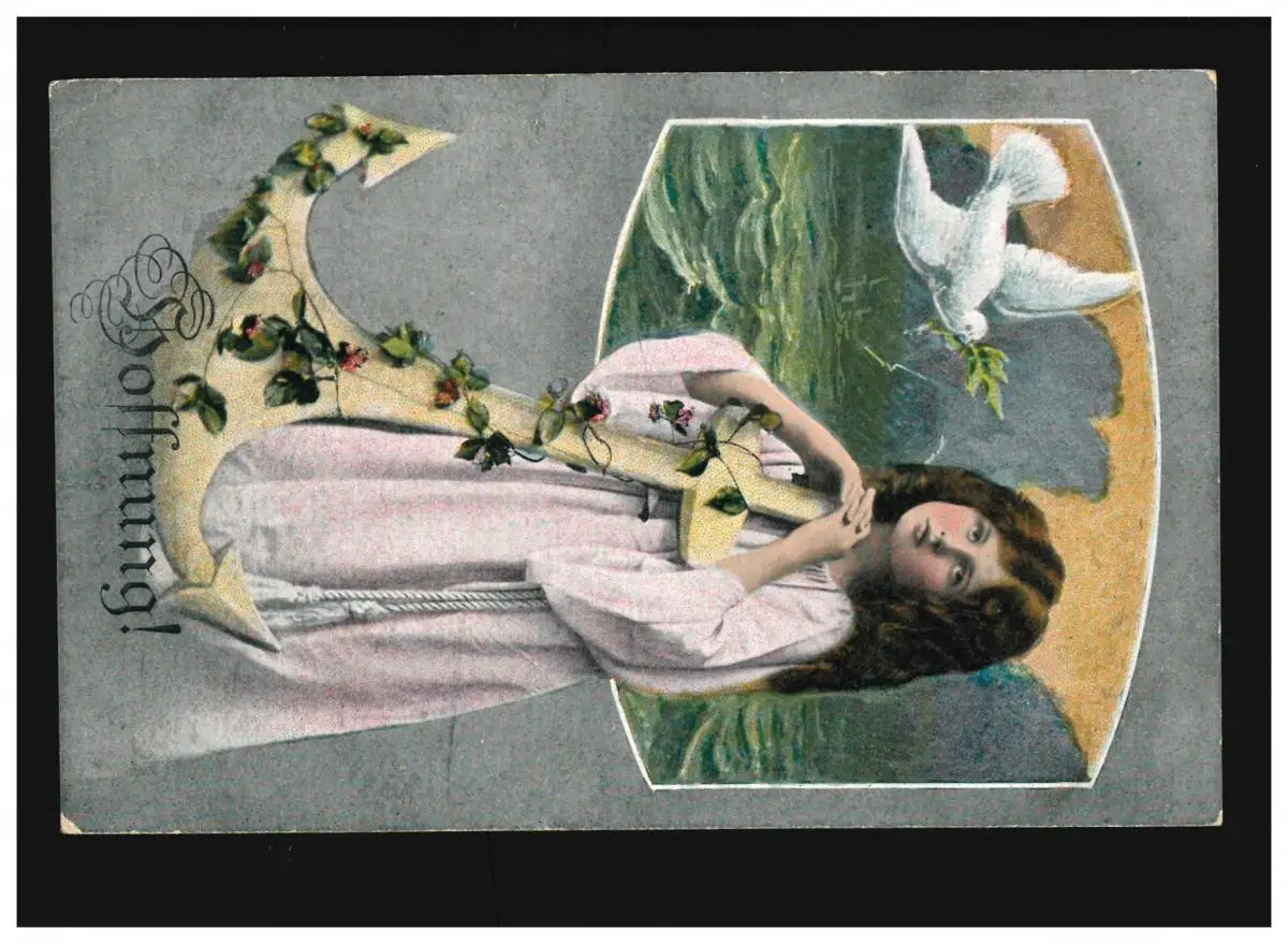 AK Femmes: Femme à genoux, avec croix, colombe blanche, râle, espoir!, inutile