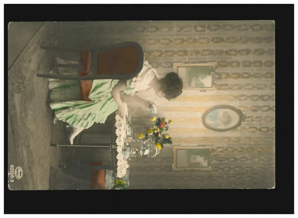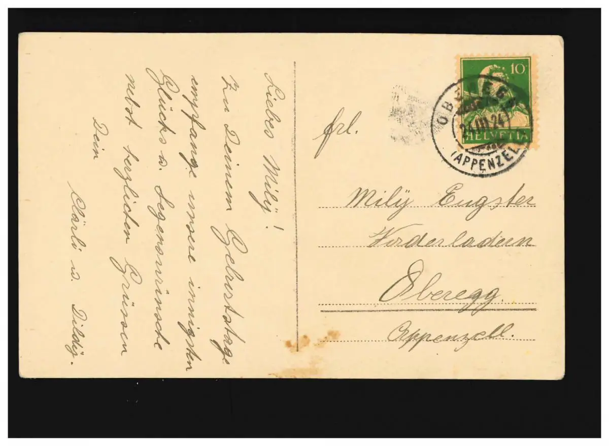 AK Femmes: femme assise café vase de fleurs photos table, Oberegg 24.3.1924