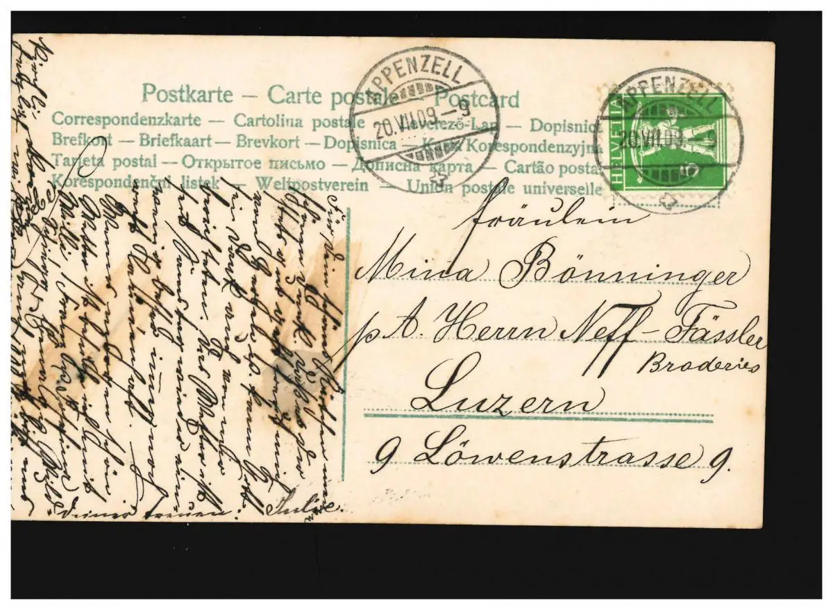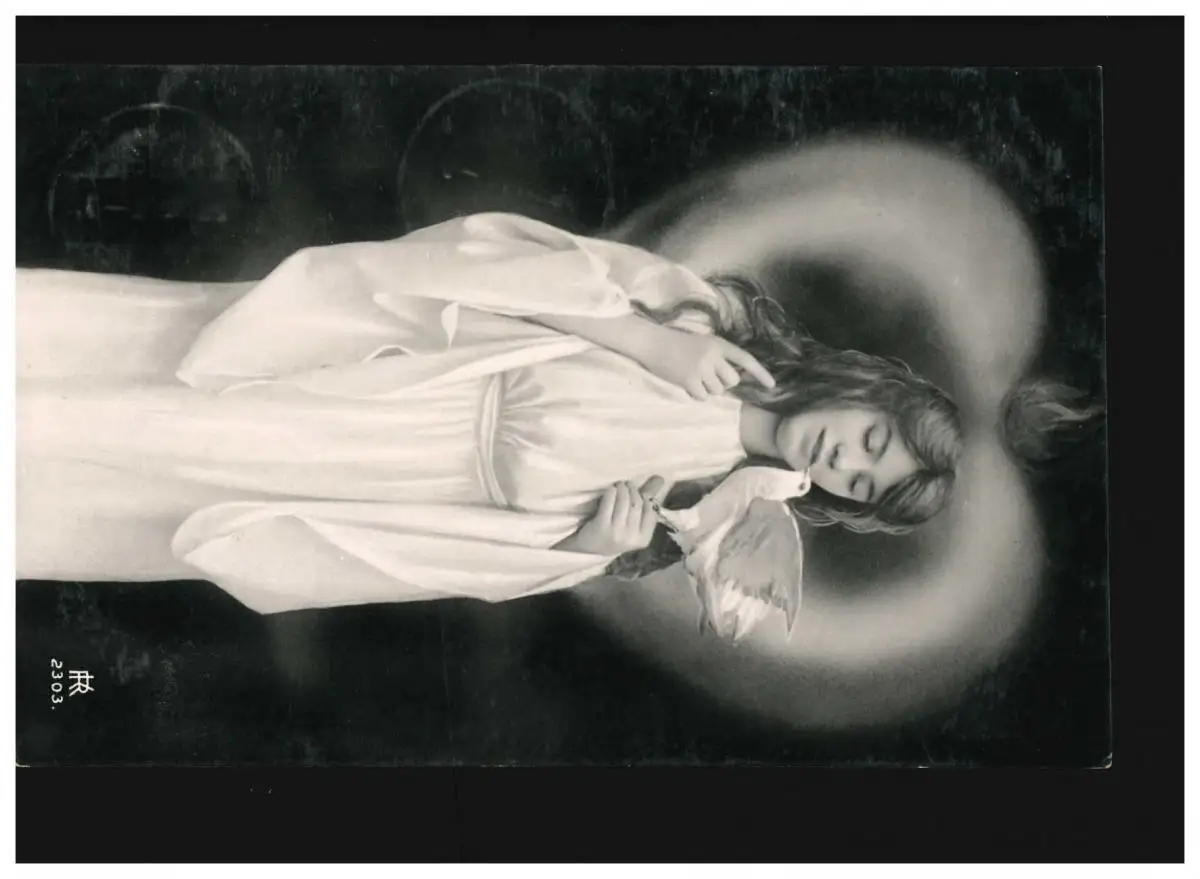 AK Femmes: femme vêtue de colombes blanches, clair de soleil, Appenzell 20.7.1909
