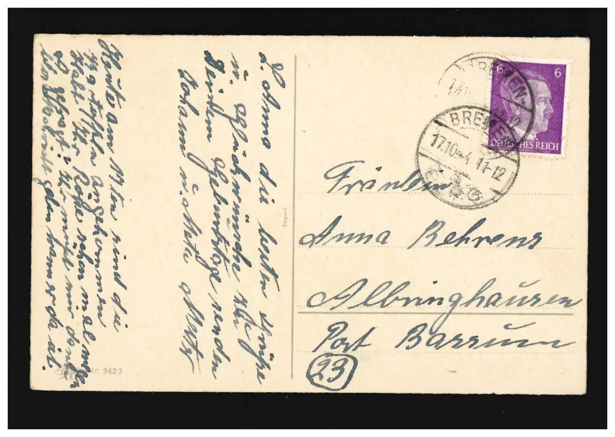 AK Fleurs Autruche Vase Astern blanc rose, Brême 17.10.1941