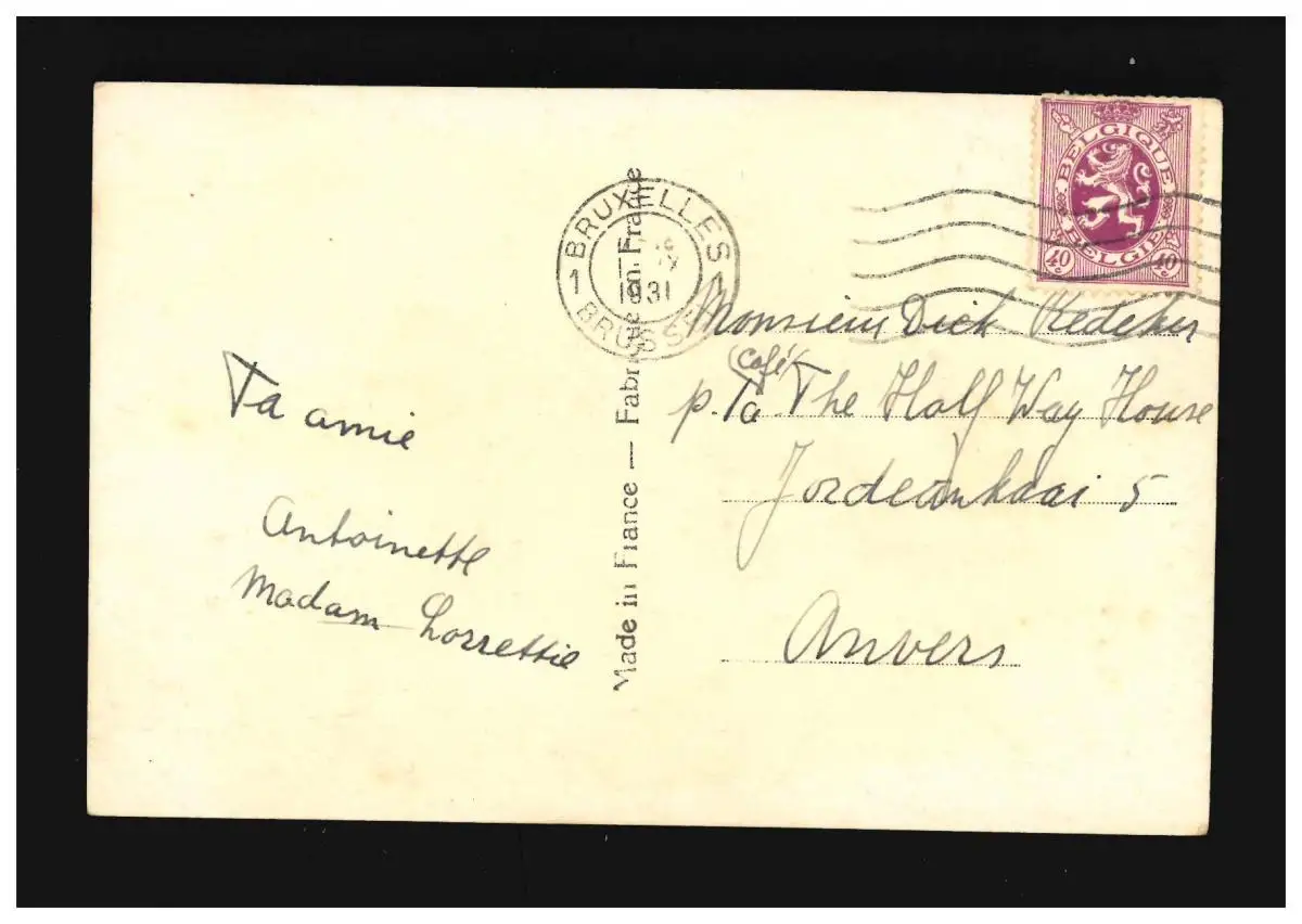 AK Fleurs Roses rouge jaune Un Baiser Écriture Village Art, Bruxelles 10.9.1931