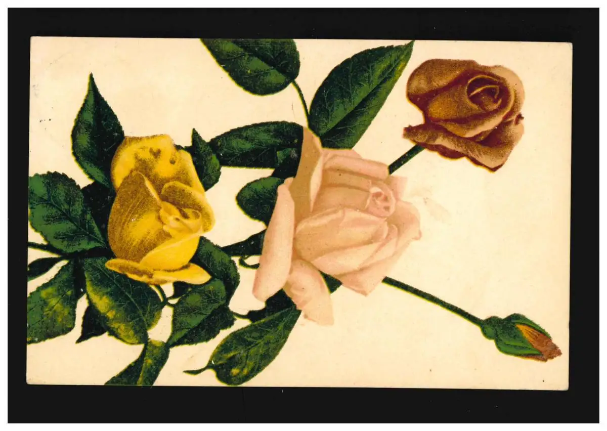 AK Fleurs bouquet jaune roses rouges Impression idéale No.1105, Wiesbaden 7.7.1913