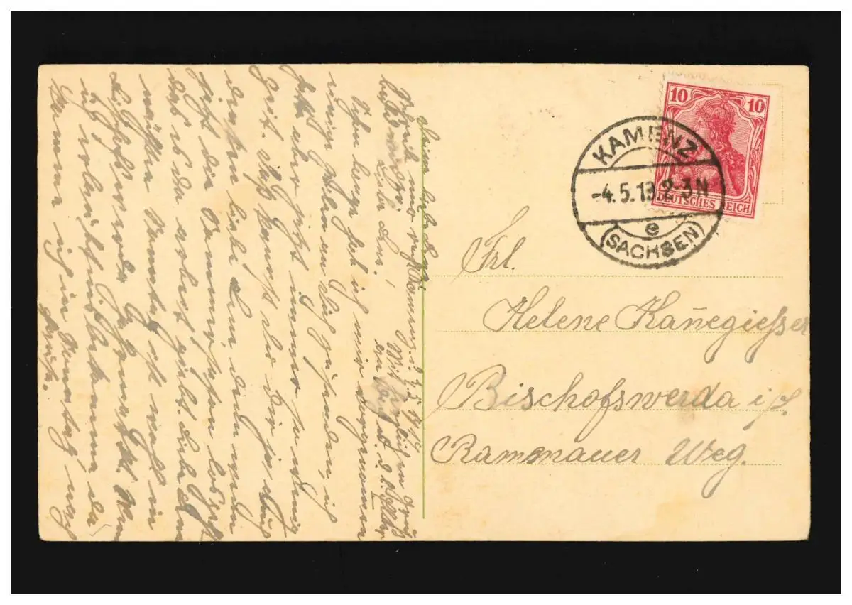 AK Fleurs bouquet roses rouges Maiglöckchen; Kamenz (Saxe) 4.5.1919