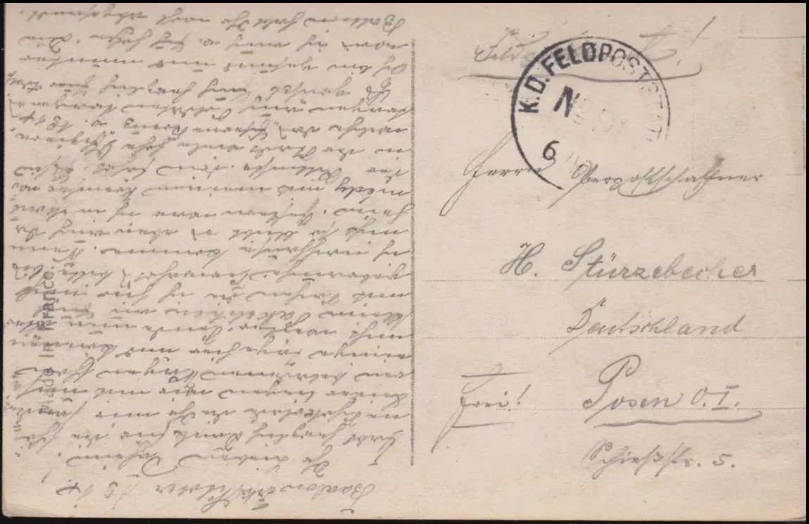 AK avion poste de terrain K.D. FELDPOSTATION No. 91 - 6.10.1914 sur Ak artistes