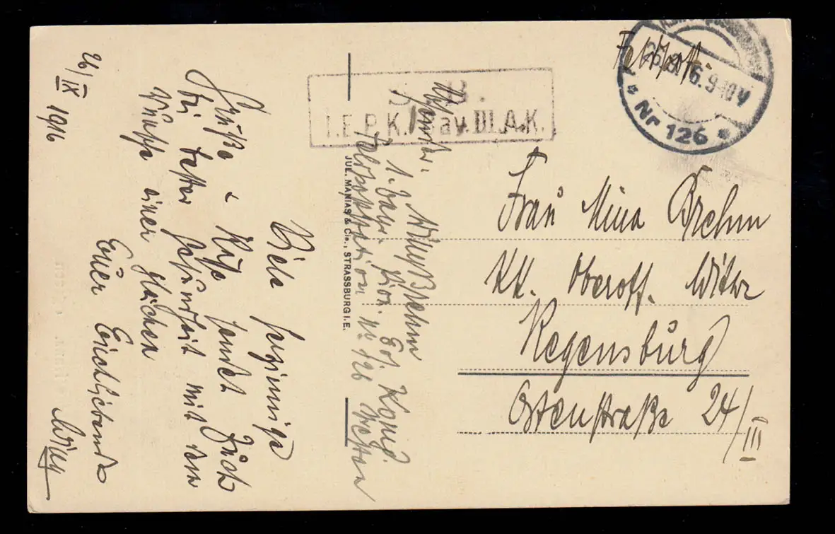 AK France: Lubine française Vosges, Feldpost 126 Bayris III Ak 26.9.1916
