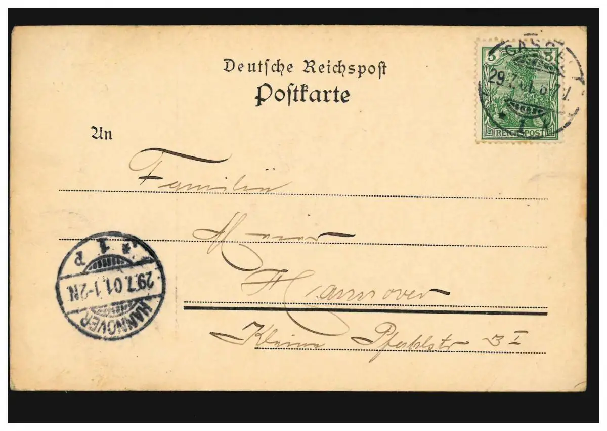 Tampon d'arrivée HANNOVER 1 p 29.7.01 Vérification: original Référence produit: 00000000019667