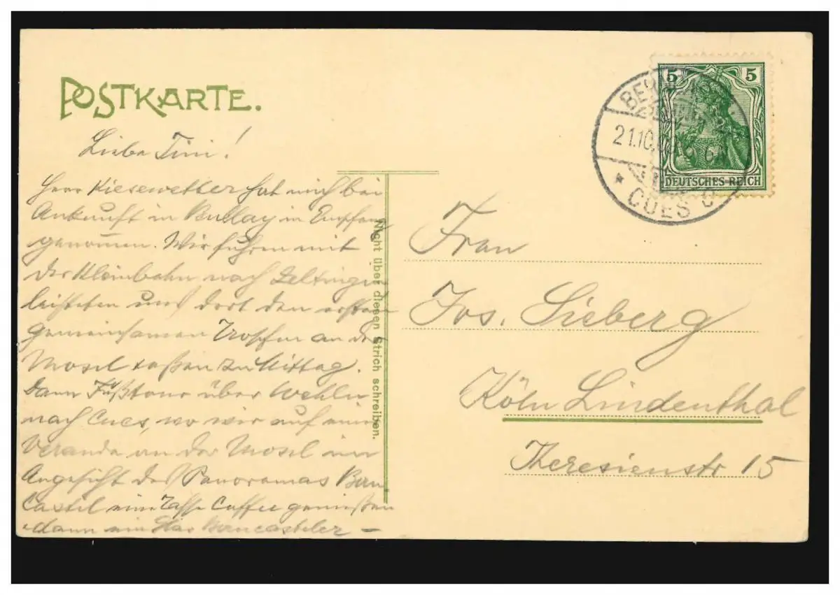 AK Gruse de Wehlen à la Moselle: Panorama, BERNKASTEL-KUES 21.10.1909