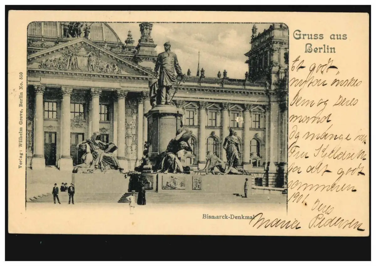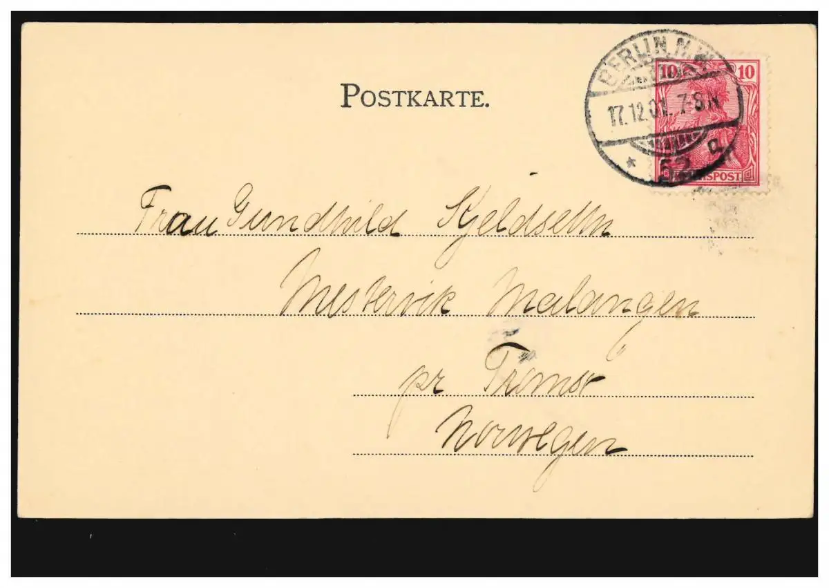AK Gruss de Berlin: Bismarck-Denkmal, BERLIN 52a 17.12.1901 vers la Norvège