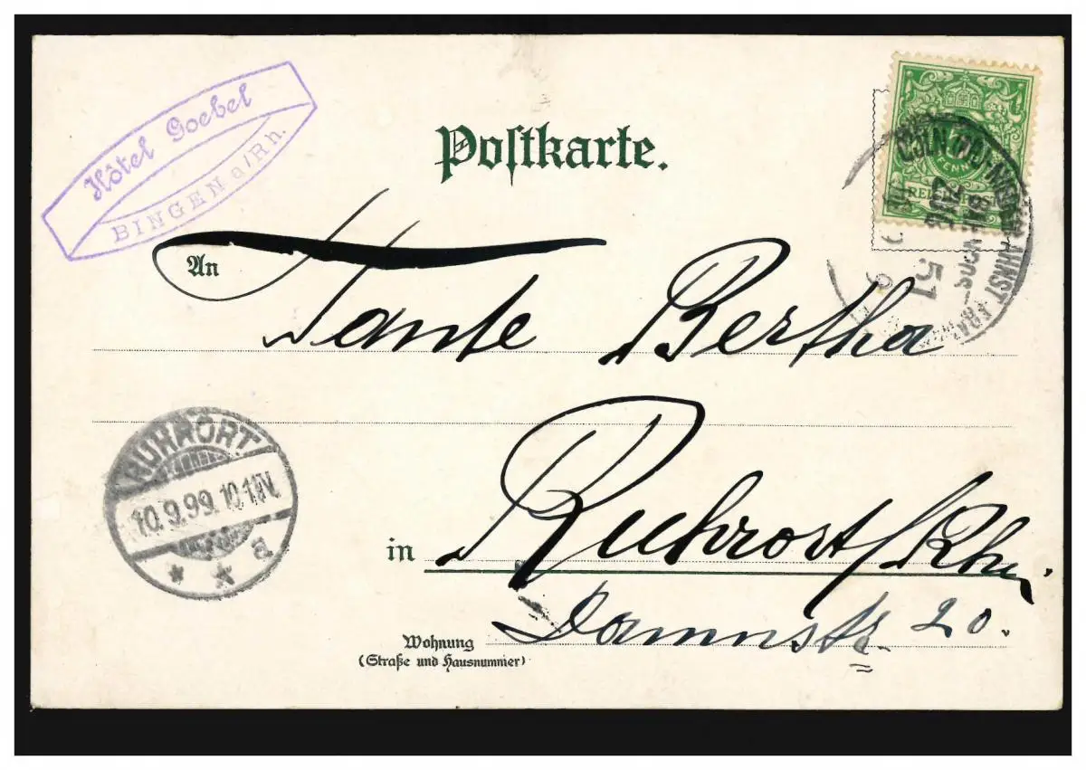AK Gruss de Bingen Burg Klopp, Bahnpost CÖLN (RHEIN) - NIEDERLAHSTEIN 10.9.99
