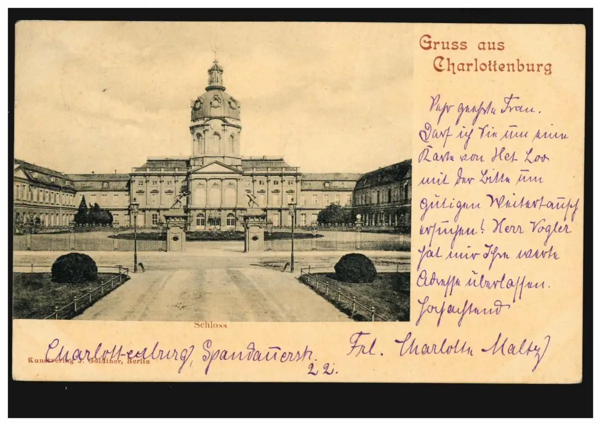 AK Gruss de Charlottenburg: Château, CHARLOTENBURG 5 - 29.7.1902 vers la Hollande