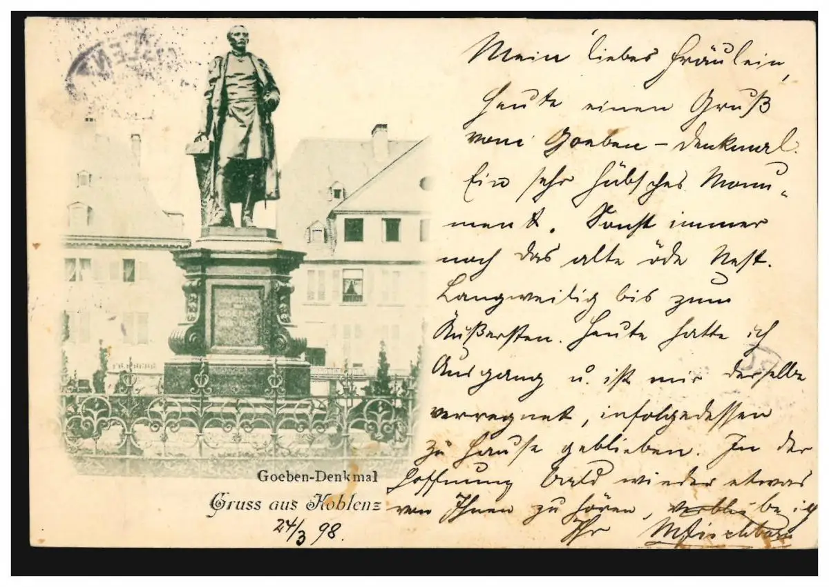AK Gruss de Coblence: Monument Goeben, Cobelenz 24.3.1898