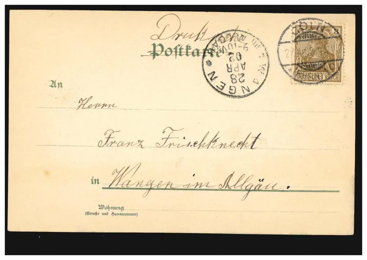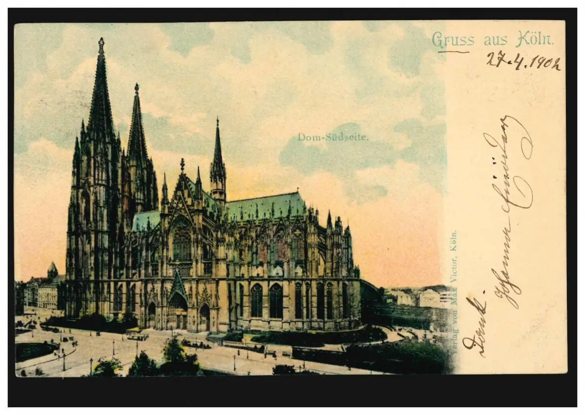 AK Gruss de Cologne: Dom - côté sud, CÖLN 27.4.1902 vers WANGEN (ALLGÄU) 28.4.902