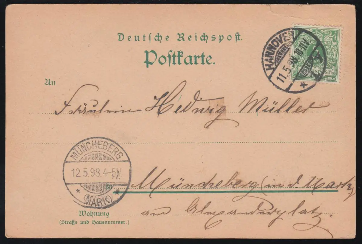 AK Gruss de Hanovre: Ernst-August-Platz 11.4.1898 après MÜNCHEBERG / MARK 12.5.