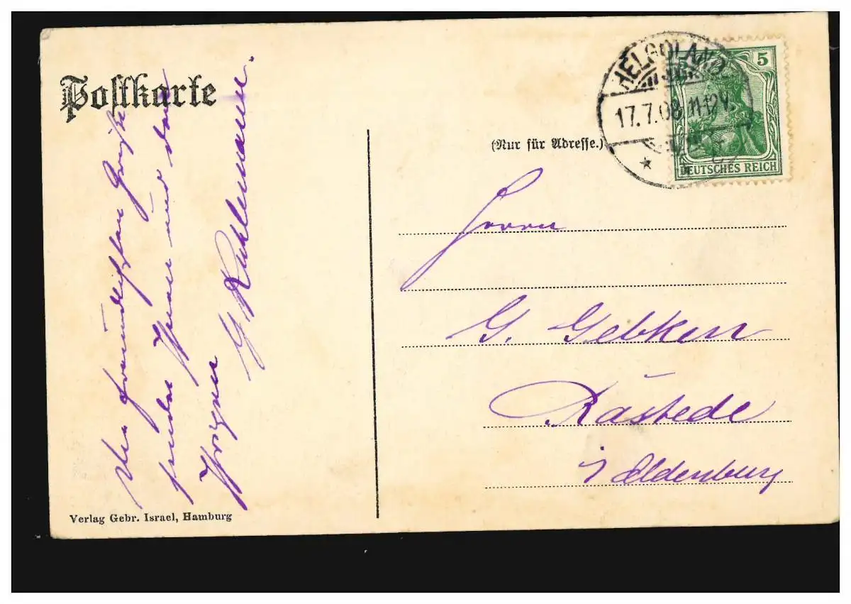 AK Gruss de Helgoland: Helgolland avec Dune, maison d'édition Né Israël, 17.7.1908