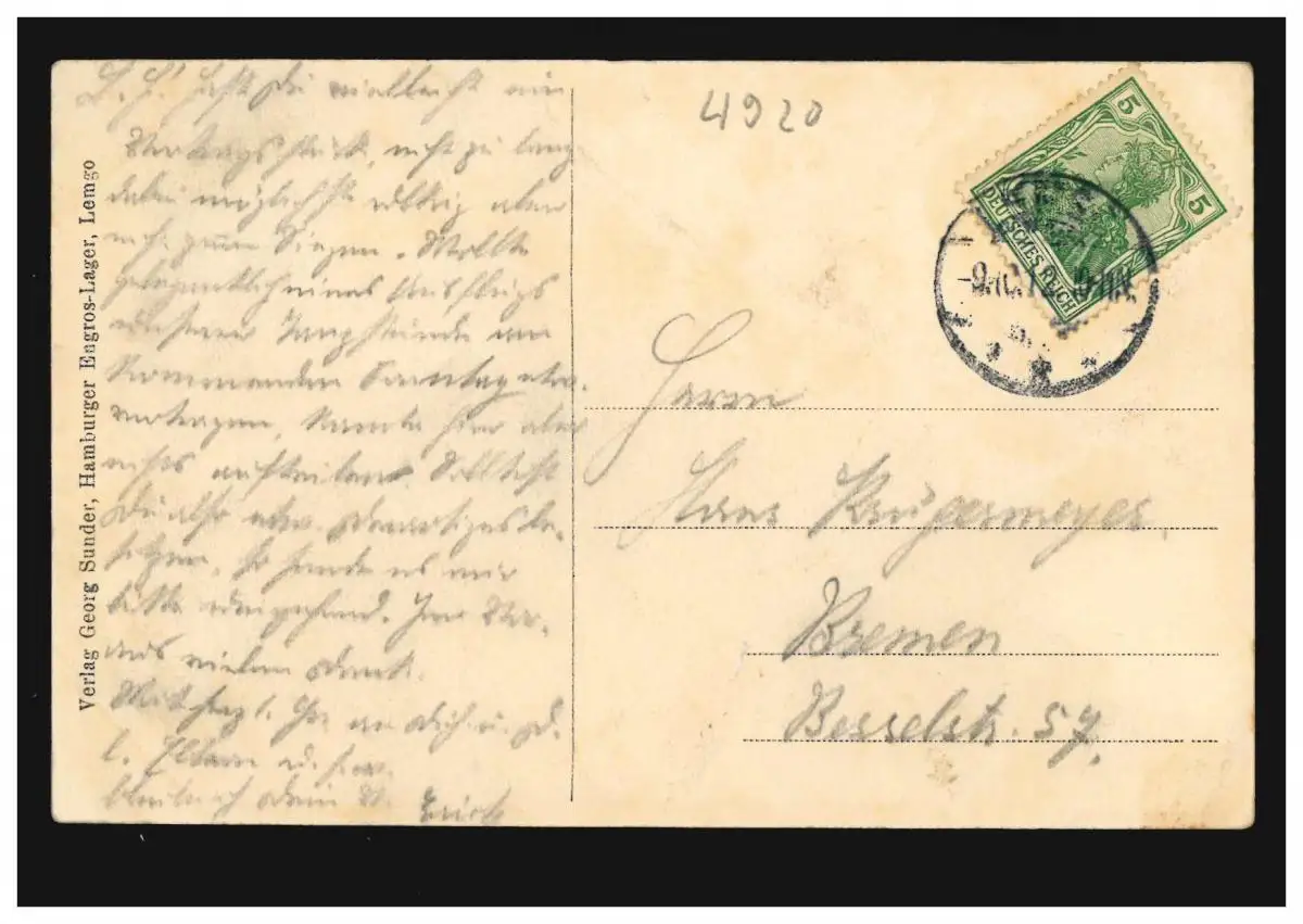 AK Gruss de Lemgo: Gymnasium, 9.10.1912 à Brême