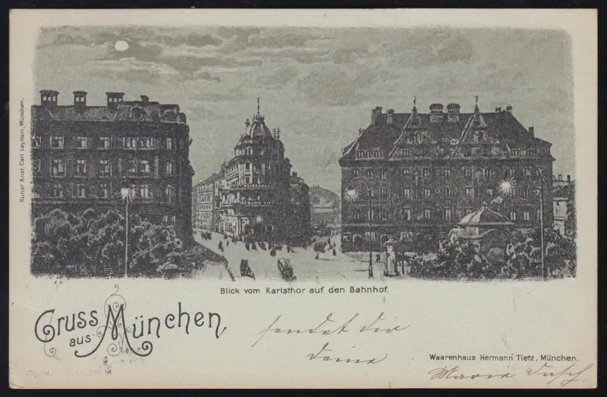 AK Gruss de Munich: Vue de la porte Charles sur la gare, 2.4.99 vers SCHWABACH