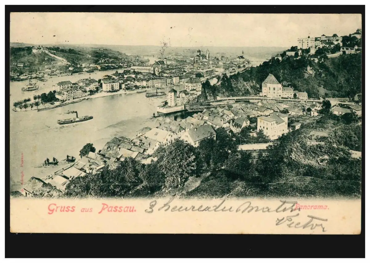 AK Gruss de Passau: Panorama, PASSAU 2 - 8.4.2004 vers BRUXELLES 9.4.04