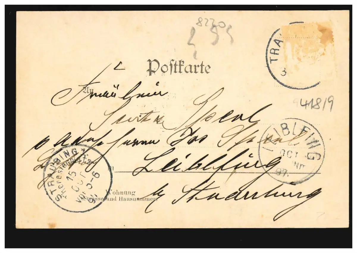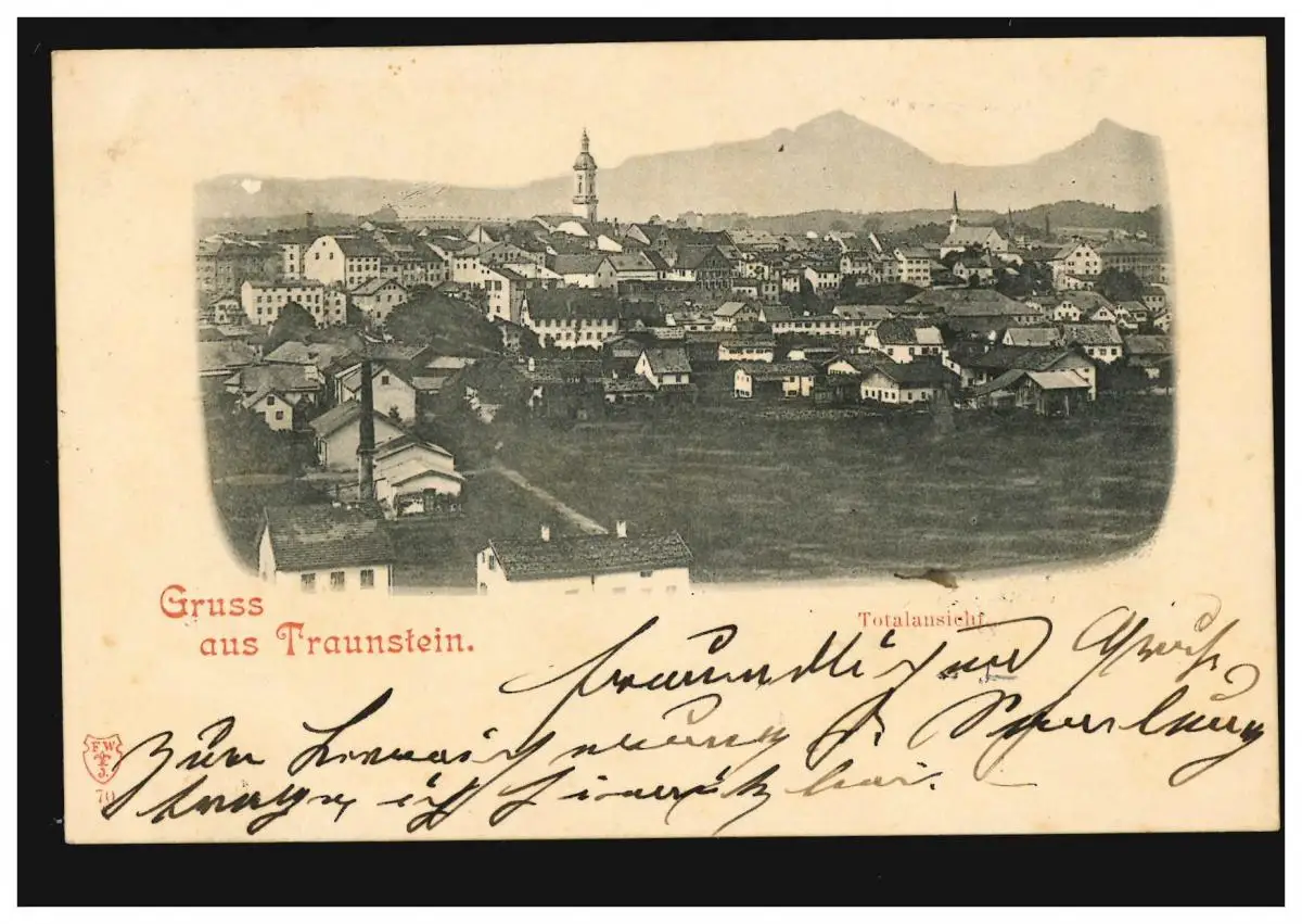 AK Gruss de Traunstein Vue totale, sur STRAUBING 1 Theresienplatz 15.10.1897