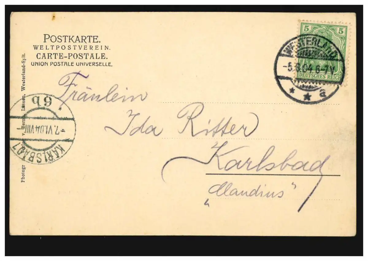 AK Gruss de Westerland-Sylt: La plage, WESTERLAND 5.6.04 selon KARLSBAD 7.6.04