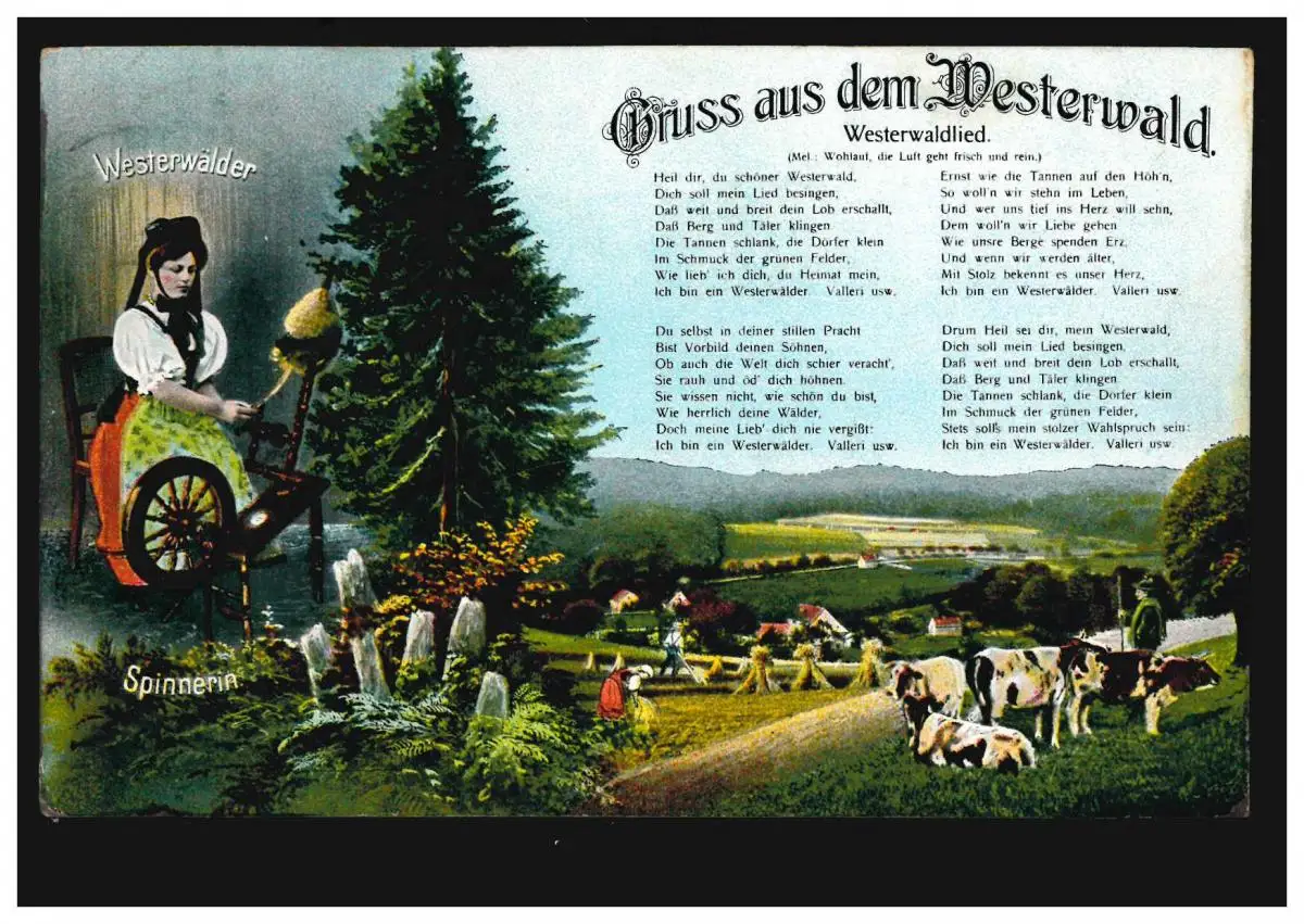 AK Gruss de la forêt de l'Ouest: Westerwaldlied et Spinnerin, AU 2.6.1912