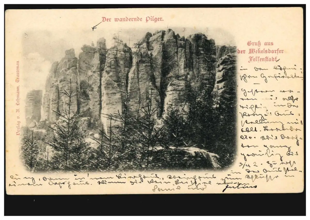 AK Gruss de la ville rocheuse de Wekelsdorf: Le pèlerin itinérant, 2.8.1898