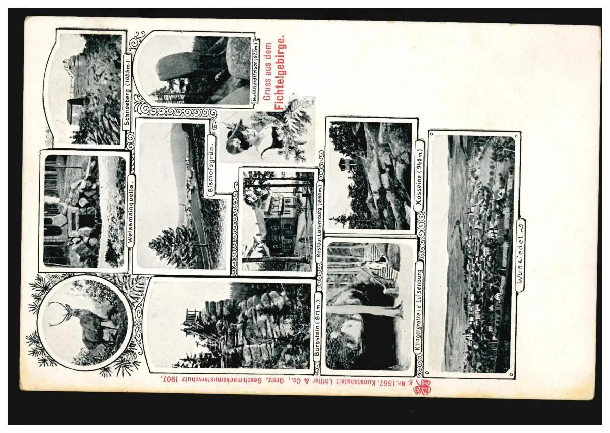 AK Gruss des montagnes de Fichtel avec 11 images, maison d'édition Löffler & Co, non utilisé