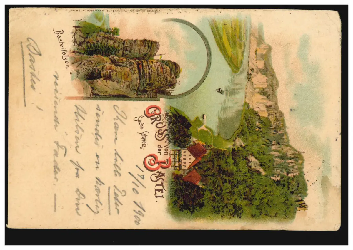 AK Gruss von der Bastei Sächsische Schweiz Bastiefelsen, WELEN (ELBE) 17.10.00