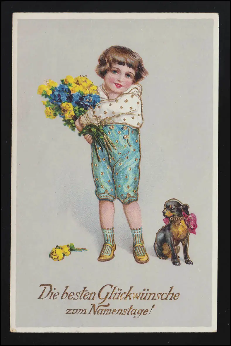 AK HWB 21340 enfant fleurs bouquet Chihuahua boucle jour de nom NEERSEN 12.7.1939