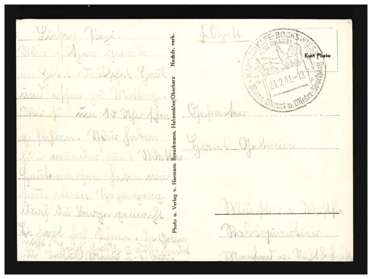 AK Hahnenklee Haute résine Bockswiese Winter Neige, Feldpost, Hohentle 23.12.1941