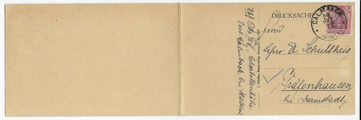 AK Heilstätte Charlottenhöhe, Post Calmbach 1922 vers Gräfenhausen, carte pliante