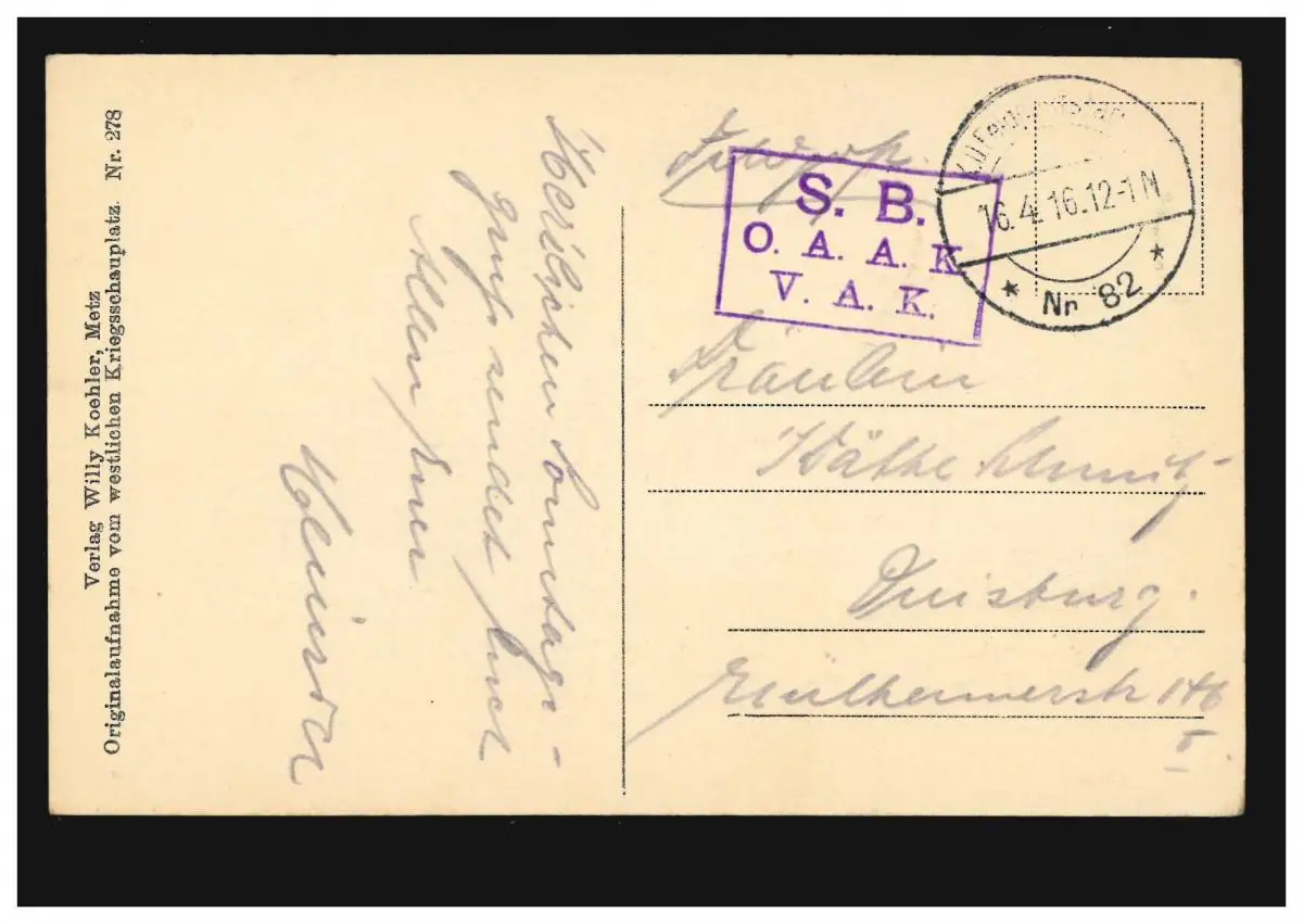AK Heudicourt: Auf der Kirchen, Feldpost 82 - SB O.A. A.K. V. AB. 16.4.1916